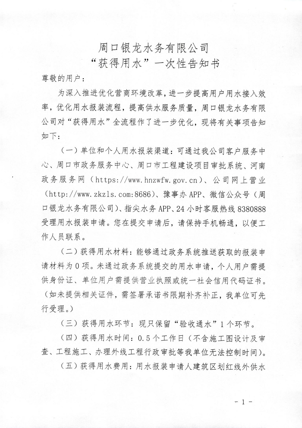 尊敬的用戶:根據(jù)《周口市發(fā)展和改革委員會周口市城市管理局關(guān)于調(diào)整周口市中心城區(qū)供水價格的通知》周發(fā)改價管【2022】32號文件,為最大限度地減少水價調(diào)整對城市低保、特困戶的影響,對中心城區(qū)經(jīng)經(jīng)民政部門認(rèn)可的城市...